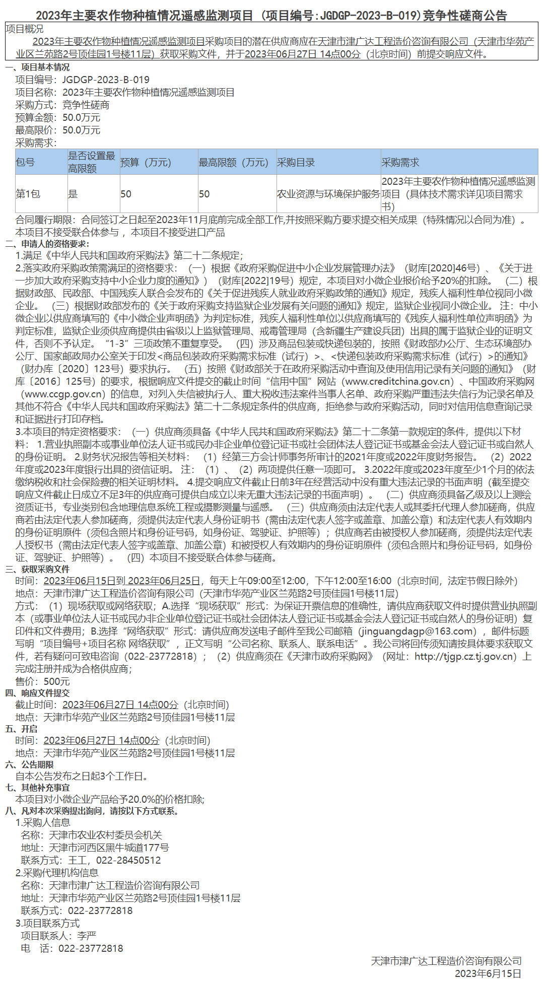 2023年主要農(nóng)作物種植情況遙感監(jiān)測項(xiàng)目